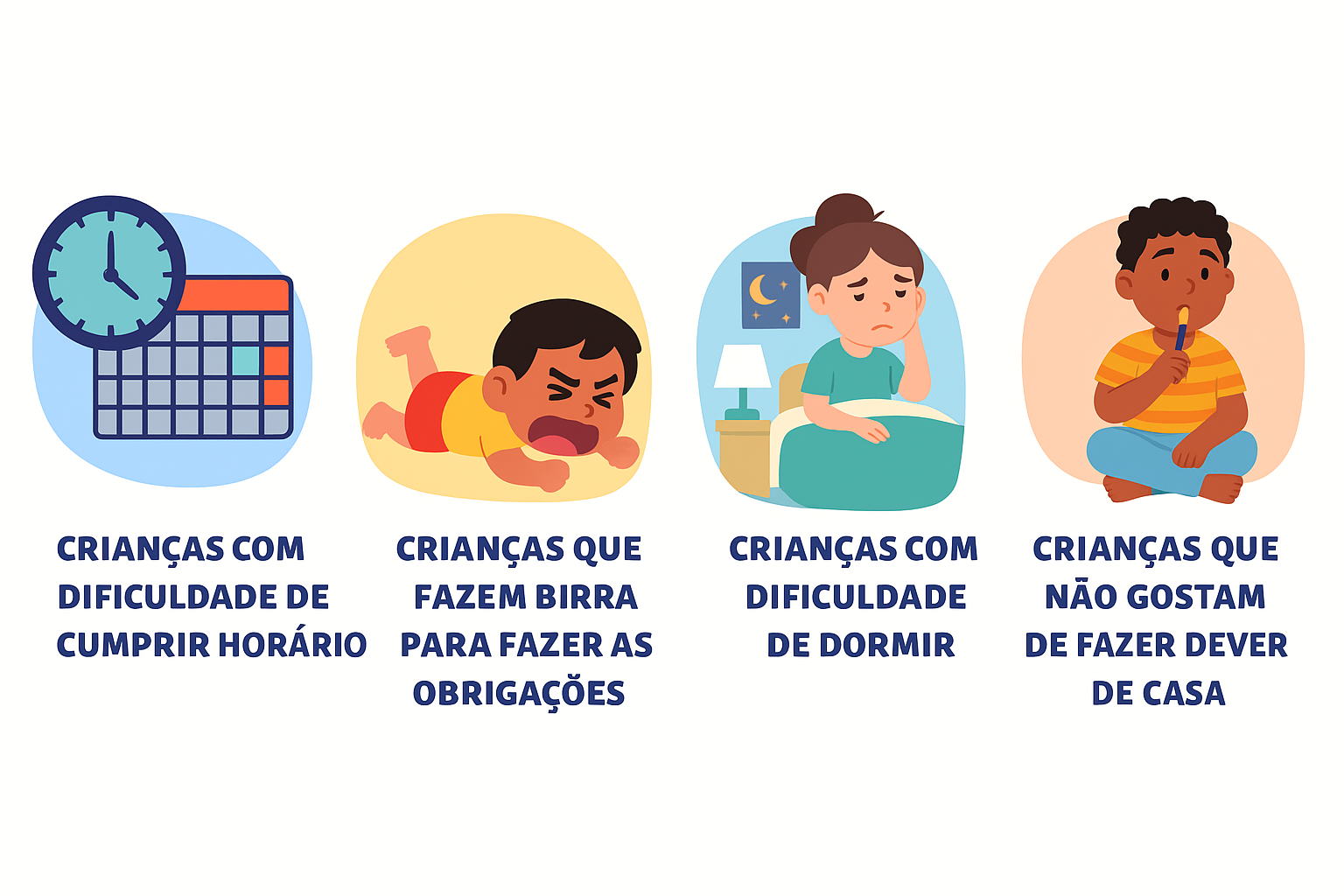 O pacote “VIDA LEVE KIDS” foi pensado especialmente para pais que enfrentam desafios como birras frequentes, resistência nas tarefas escolares, dificuldades para dormir e uma rotina desorganizada.